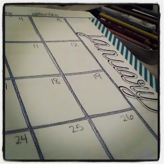 I pulled out my colored pencils to start my current work in progress project. I am making a planner because I can't find the design that I like anywhere. I was inspired by this post by Alisa Burke and set about making my own. It's about half way done. Here's a little sneak peak :-)